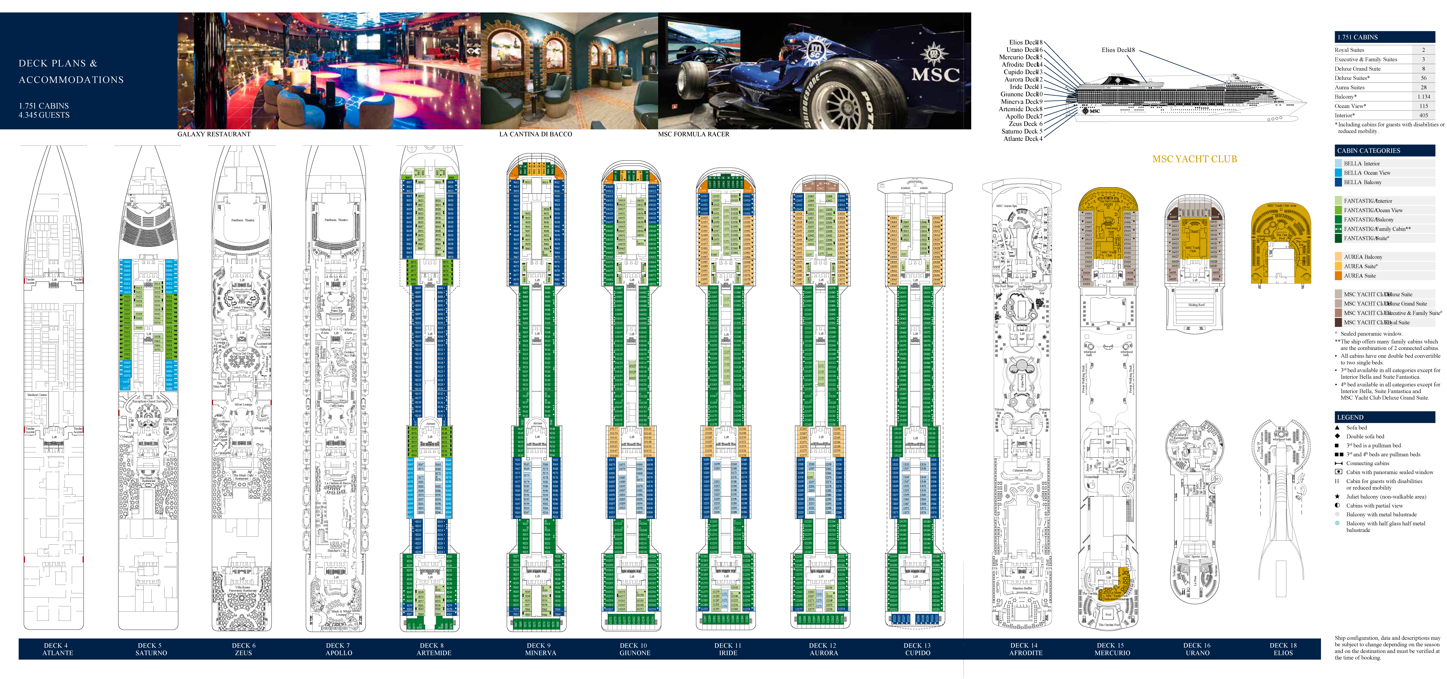 MSC Divina – круизный лайнер, чье название переводится как «божественная». И MSC Divina действительно дарит своим гостям отдых, достойный богов. Этот превосходный круизный лайнер, крестной матерью которого стала легендарная Софи Лорен, принадлежит к классу самых больших и роскошных судов флота MSC Cruises – «Фантазия». Как и другие корабли-«одноклассники» он впечатляет своими гигантскими размерами, техническими возможностями, инновационными решениями, утонченным дизайном и разнообразной инфрастр...
